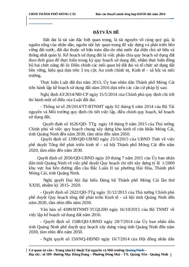 Bao Cao Thuyết Minh Tổng Hợp Khsd đất Năm 2016 Ubnd Thanh Phố Mong Cai